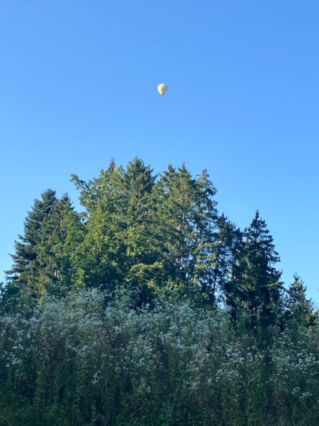 Jeanne ging mit Lucky 2.0 in der Nähe von Aschau spazieren. Lucky war von einem Heißluftballon sehr fasziniert, den er lange beobachtete. Schließlich ging er aber weiter, schnüffelte herum und freute sich über Leckerchen und Streicheleinheiten. Als Jeanne zum Stall fuhr, wartete er brav im Auto, das Jeanne so geparkt hatte, dass er sie, Sonja und die Pferde gut konnte. 🙂