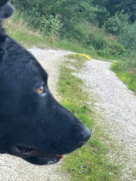 Chris fuhr am Abend mit Santana zum Wasserfall, wo die beiden einen entspannten Spaziergang machten. Santana stieg ins Wasser, freute sich über Leckerchen und schnüffelte intensiv auf allen möglichen Spuren. Es war ein schöner Ausflug. 🙂