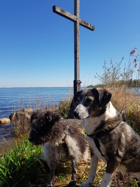 Latjak und Valentina waren mit Doris in Richtung Chiemsee unterwegs. Die beiden erkundeten freudig die Umgebung und fanden den Ausflug richtig klasse. Auf dem Rückweg kam ein Fahrradfahrer vorbei, den Valentina verbellte. Sie beruhigte sich aber ziemlich schnell und ging fröhlich mit Doris weiter. 🙂