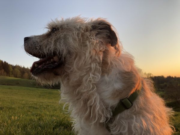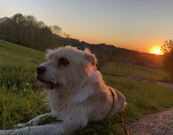 Lucky genoss einen langen Spaziergang mit Frau Meinberger an den Chiemsee. Er schnüffelte viel im Unterholz und freute sich über die Streicheleinheiten von ihr. 🙂