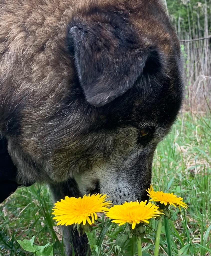 Mit Giselle ging Jutta in Richtung Übersee bis zur Unterführung. Fröhlich schnupperte Giselle am Wegesrand und gab sich große Mühe, aus den unzähligen Mauselöchern eine Maus heraus zu pusten, aber zum Glück vergeblich. 🙂 Jutta tröstete sie mit gemütlichen Kuschelpausen und einer Leckerliesuche. 🙂 Am Nachmittag gingen Alexandra, Chad und Neo mit ihr vor bis zum Maler Haas. Giselle genoss die Sonne, die mittlerweile herausgekommen war und wälzte sich immer wieder lachend im Gras. 🙂