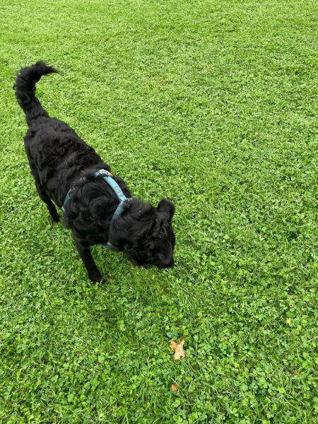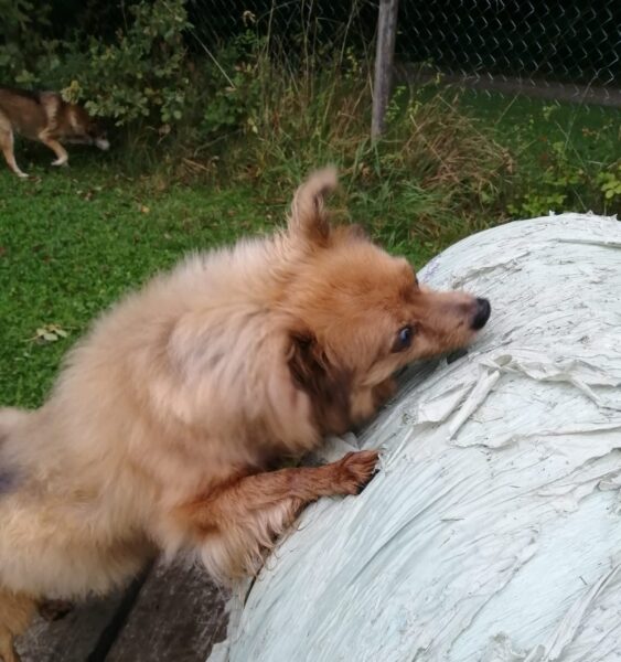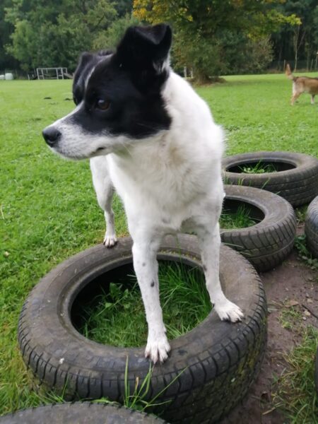 Jeanne war mit Lucky 2.0 auf dem Hundeplatz, der zuerst wie ein Blitz über die Fläche fegte. Nachdem der erste Schwung heraußen war, konnte er die Übungen an den Geräten und gegebene Kommandos konzentriert und sicher ausführen – wofür es zu seiner Freude Leckerchen gab. 🙂