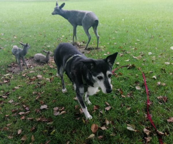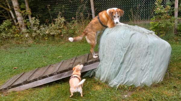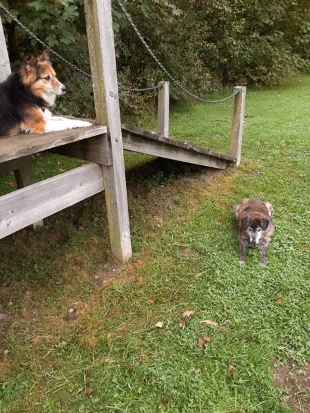 Jutta war derweil mit Fio, Flora und Grisu auf dem Hundeplatz. Auf den umliegenden Wegen war wenig los und so arbeiteten die drei konzentriert an den Geräten, suchten die von Jutta ausgelegten Leckerlies und hatten viel Spaß bei Pfötchenspielen. 🙂
