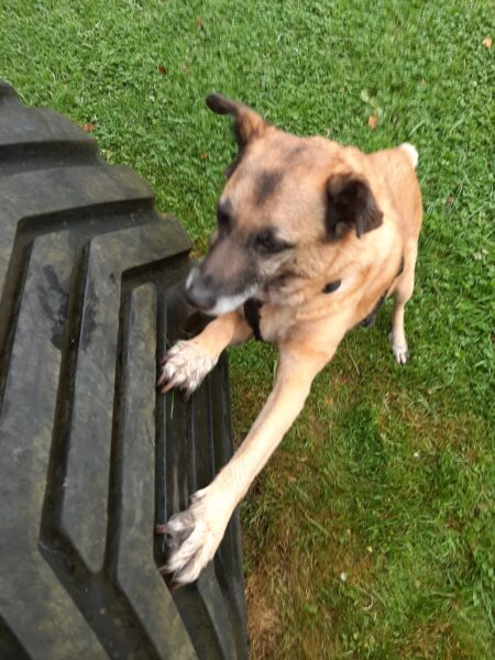 Fred fuhr mit Rosalie, Lucky und Balto zum Hundeplatz, wo Lucky und Rosalie herumflitzten, während Balto in gemütlichem Tempo die Fläche erkundete. Dann schnüffelten die drei zusammen an den Reifen nach den von Fred ausgelegten Leckerchen und Lucky und Rosalie erkundeten auch noch die anderen Geräte. 🙂