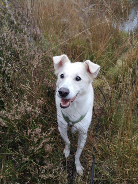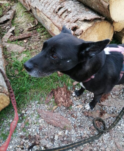 Jack macht weiterhin stetig kleine Fortschritte beim Gewöhnen an die Leine. Wenn Alex ihn anleinen möchte, zeigt sie ihm die Leine, er schnüffelt kurz am Karabiner und bleibt – wenn auch nicht begeistert – ruhig stehen und akzeptiert mittlerweile, dass es nur mit Leine durch das Hoztor in den Hof oder in den Auslauf geht. Dabei läuft er aber schon gut und ruhig mit und wartet, bis er abgeleint wird. Die anschließende Kuscheleinheit erwartet er dann schon mit wedelnder Rute, der süße Kerl! 🙂