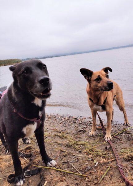 Jutta und Gunda waren mit Momo und Aika am Chiemsee. Die beiden freuten sich sehr über ihren Ausflug, schnüffelten auf interessanten Spuren, plantschten im Wasser und genossen Leckerchen und Streicheleinheiten. 🙂