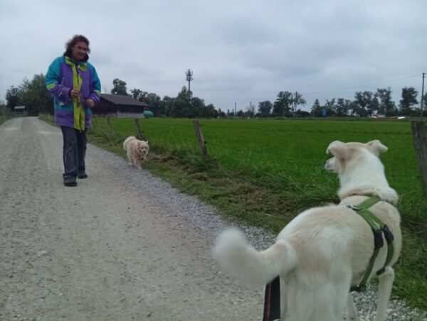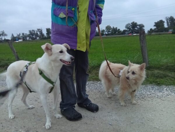 Lucky 2.0 freute sich über einen schönen Abendspaziergang mit Patricia und ihrer Mutter zum Medical Park. 🙂 Und Kriana über eine tolle Runde mit Gunda vorne auf den Wegen rund um das Lager vom Maler Haas. 🙂