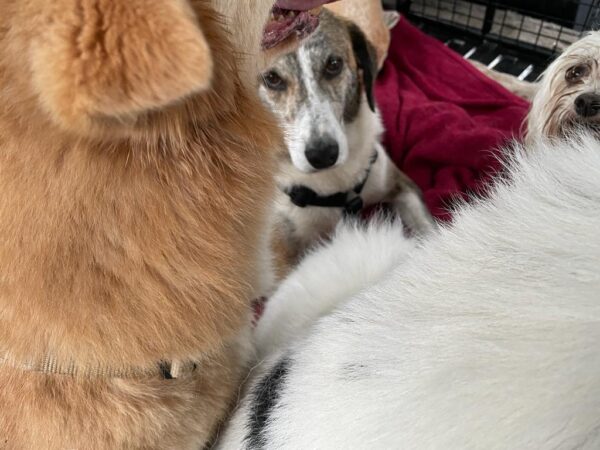 Mit Lena fuhren Michi und Alex zum Hundeplatz. Im TierHeimauto wurde es heute noch etwas enger, denn neben Lena und Michi´s Hunden waren auch Alex´ Hündinnen dabei. Die Fahrt verlief dennoch ganz entspannt und auf dem Hundeplatz hatten alle viel Spaß, da war der Regen Nebensache. 🙂 Als sie sich auf den Rückweg machten, lief Lena auf Michi´s ruhige Ansage „Auto hopp“ gleich voraus zum Auto, sprang hinein und wartete geduldig, bis auch alle anderen Hunde wieder drin waren. 🙂
