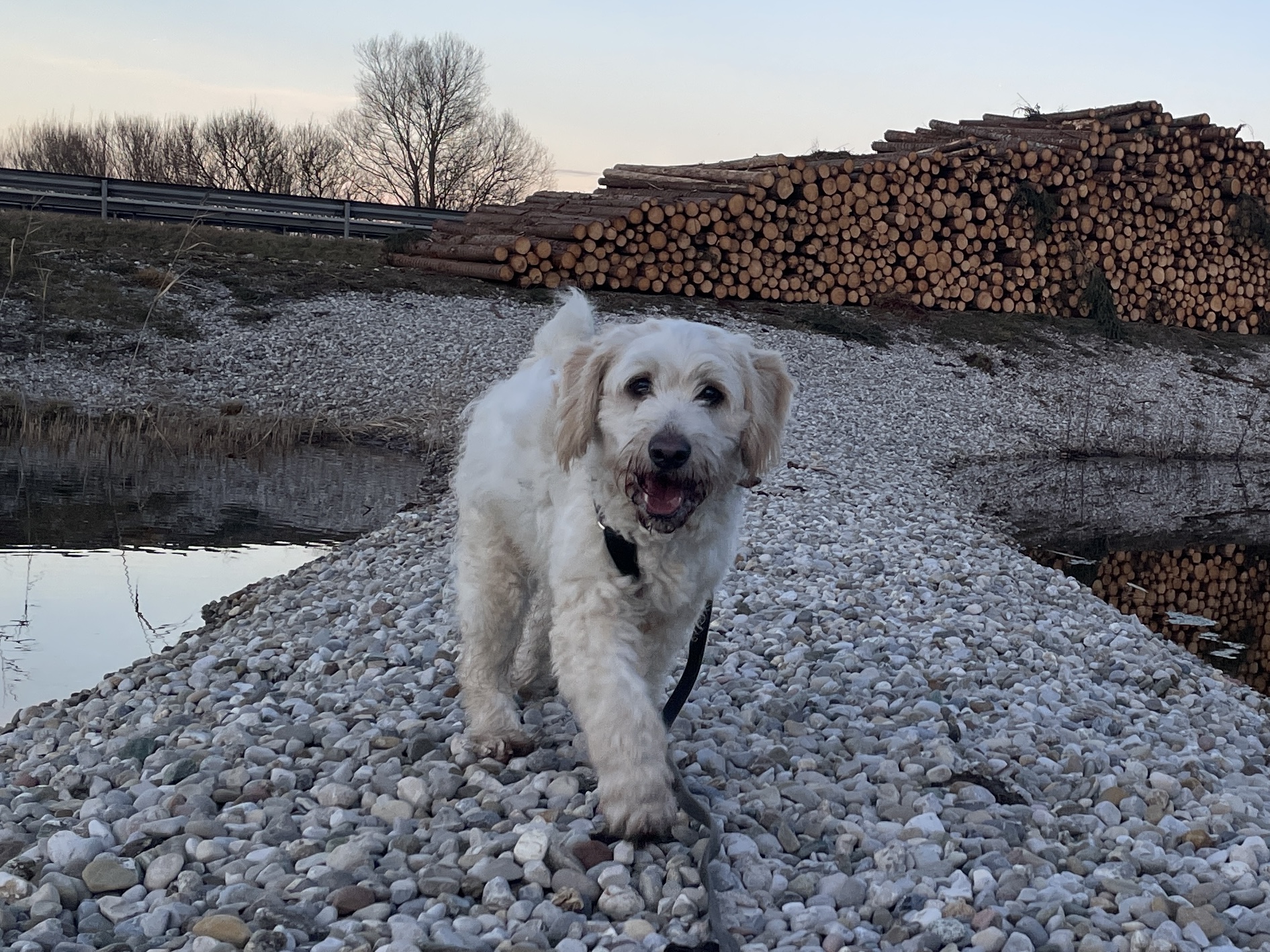 Benjamin war mit Rosie im Medical Park unterwegs. Einen frei laufenden Hund, den die beiden trafen, begrüßte Rosie freundlich. 🙂 Am Nachmittag freute sie sich über einen langen Abenteuerspaziergang mit Renate am Förchensee. Rosie war sehr aufmerksam beim Erkunden des Ufers, jedem noch so kleinen Geräusch sauste sie gleich hinterher. 🙂