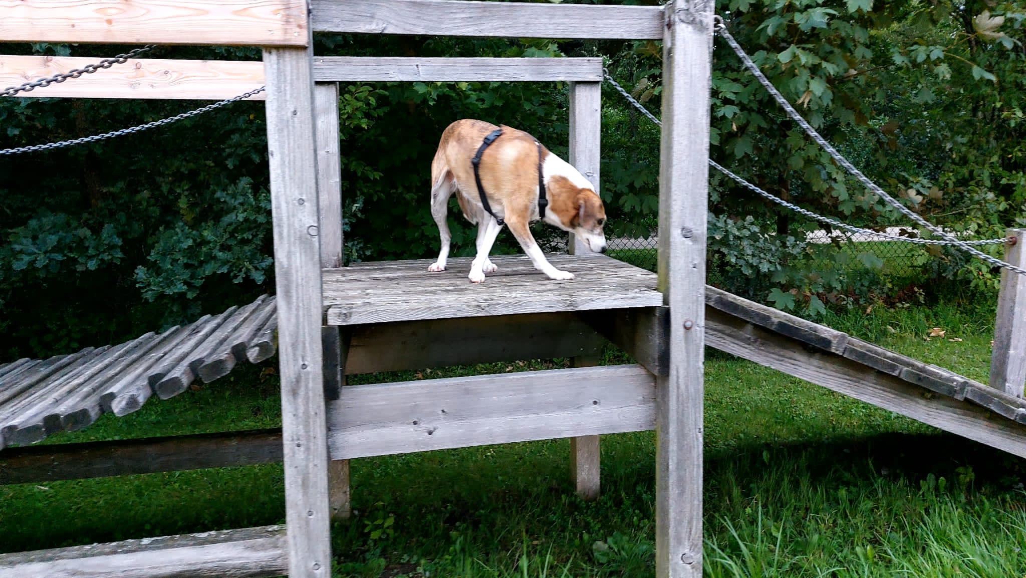 Chris fuhr mit Percy, Nicky und Laluna zum Hundeplatz, wo sie alle viel Spaß hatten. Die Hunde spielten an den Geräten, tobten über die Wiese und freuten sich über eine Leckerliesuche und Streicheleinheiten von Chris. 🙂