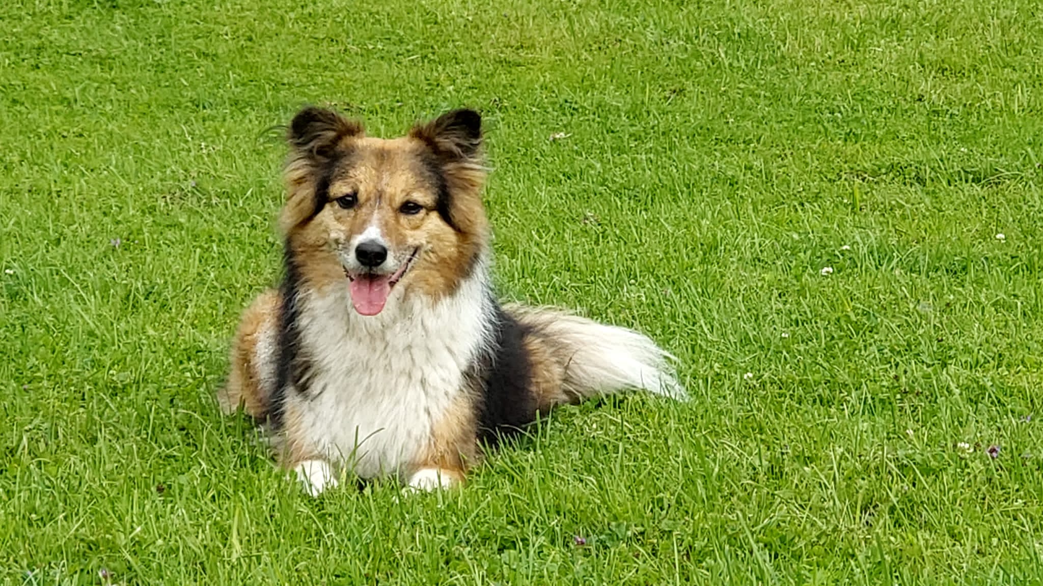 Mit Sam ging Chris auf den Wiesen rund ums TierHeim spazieren. Als es wieder anfing zu regnen, drehten sie um und Chris blieb noch etwas bei Sam und Giselle im Zimmer zum Kuscheln. 🙂