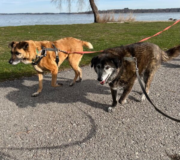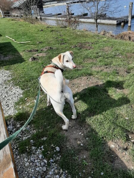 Lucky und Balto freuten sich über einen schönen Morgenspaziergang mit Em und Elfriede. Gut gelaunt bummelten sie durch den Medical Park, erkundeten das Seeufer und suchten begeistert nach Leckerchen, die Em und Elfriede für sie in der Wiese versteckt hatten. 🙂