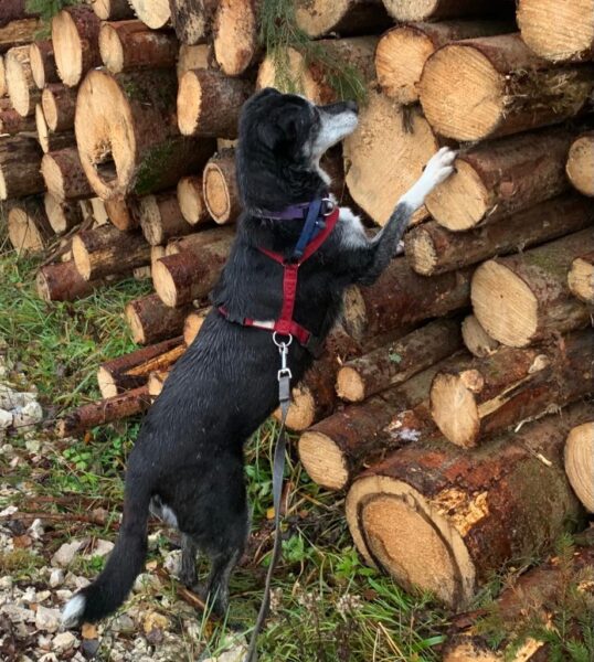 Mit Resi und Franzi gingen Elfriede und Em zum Waldweg hinter der Raststätte. Die Mädels liefen lachend voraus, schnupperten viel und staunten über den Verkehr auf dem Rastplatz. Entspannt stromerten sie den Waldweg entlang und freuten sich über Leckerliesuchen. 🙂