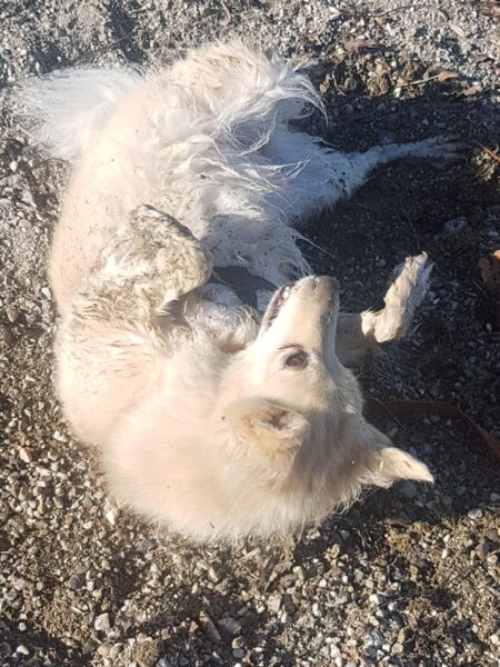 Suri freute sich auch, als sie von Conny zum Spaziergang abgeholt wurde und sprang gleich in ihr Auto. Die beiden fuhren zum Medical Park, wo Suri interessiert herumschnüffelte. Sie war richtig fröhlich, wälzte sich unentwegt auf dem Rasen, im Sand und sogar auf dem Gehweg und lachte dabei von einem Ohr bis zum anderen. Einige Hunde beobachtete sie ruhig aus der Ferne, hingehen wollte sie aber nicht. Viel spannender fand sie die Gerüche am Wegesrand. 🙂