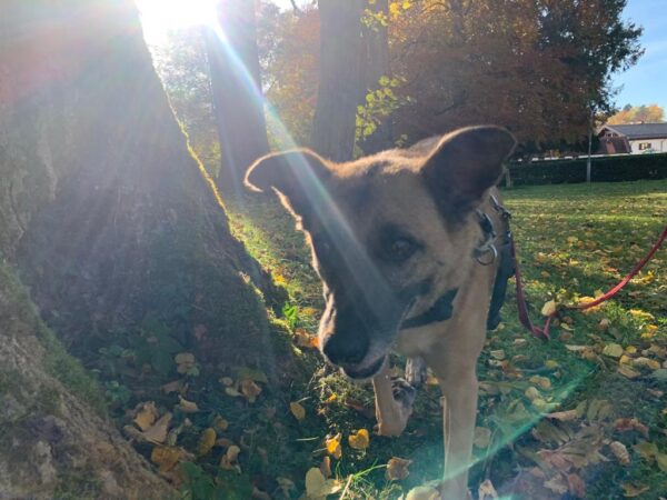 Heute ist Yuno bei uns eingezogen. Der HSH-Mischlingsrüde kam ursprünglich aus Griechenland und wurde hier in Deutschland zu einer Familie vermittelt, die nicht mit ihm klar kam. Er hat auf dieser Stelle viele Hundeschulen durchlaufen, aber leider nur solche, die mit veralteten Dominanztheorien arbeiteten und weder Erfahrung, noch Einfühlungsvermögen hatten. So ist der arme Kerl völlig verunsichert worden und zeigt diese Unsicherheit nun durch Knurren. Jedenfalls mußte er von der Familie weg und wurde von seinen Rettern zu einer Pflegestelle gebracht, die aber leider nur für ein paar Tage einspringen konnte. Nachdem in der Kürze der Zeit kein Zuhause für ihn gefunden werden konnte, haben sich seine Retter entschieden, ihn zu uns in Pension zu bringen und hier darf er bleiben, bis er sein endgültiges Zuhause gefunden hat. Wir werden Euch den bildschönen Kerl in den nächsten Tagen näher vorstellen, wenn wir ihn besser kennengelernt haben. Michi und Doris gingen gleich mit ihm spazieren. Er lief prima an der Leine, war sehr aufmerksam und suchte immer wieder den Blickkontakt zu Michi, die die Leine hielt. Richtungswechsel machte er super mit und so umrundeten sie an lockerer Leine die Wiese, gingen dann zu dem kleinen See hinter der Wiese und auf dem Weg entlang zurück ins TierHeim. Radfahrer beobachtete er aus einer Entfernung von 5 Metern ruhig und interessiert. Er hat offensichtlich gelernt sich hinzusetzen, wenn er warten muss, denn jedes Mal, wenn Michi ihm das Kommando „warte“ gab, setzte er sich ab. Auf dem Rückweg fuhr ein Fahrrad in einem Meter Abstand an ihnen vorbei, auch das beobachtete er ruhig und entspannt und auch als ein Fahrzeug der Gemeinde Bernau vorbeifuhr, blieb Yuno völlig gelassen. 🙂