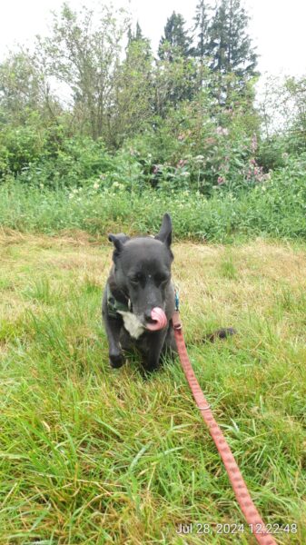 Anna Maria fuhr mit Santana zum Bärnsee und ging dort mit ihm spazieren. Santana badete gleich im Moor und wurde dabei total dreckig. Als er einer Familie mit Hund begegnete, blieb er ruhig und ging entspannt an ihnen vorbei. Santana war die ganze Zeit zwar sehr fokussiert, aber gar nicht aufgeregt oder gar gereizt. Auf dem Rückweg begegnete er der Familie wieder, die versicherten einen sehr lieben Hund zu haben und da Santana auch sehr entspannt war, hatte er so eine schöne Hundebegegnung. Die Brotzeit im Rucksack einer der Leute roch er auch gleich und schnupperte den genau ab, schnappte aber nicht danach. 🙂