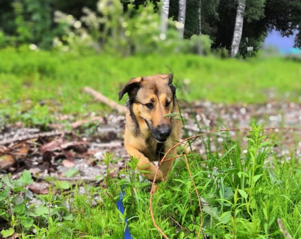 Dani wollte eigentlich mit Paddy und Mogli spazieren gehen, aber Paddy hatte keine große Lust das Zimmer zu verlassen. Wahrscheinleich auf Grund des immer wieder einsetzenden Regens. So ging Dani mit Mogli in Richtung Maler Haas. Mogli freute sich sehr, schnüffelte viel und an den kleinen Weihern beobachtete er skeptisch die Frösche. Trotz des nassen Wetters badete Mogli in dem kleinen Weiher. Dann ging er mit Dani weiter und freute sich über eine Leckerliesuche auf den Holzstämmen. Eifrig suchte er alles ab und schaute immer wieder fragend zu Dani, ob noch weitere versteckt sind. Etwas nass vom Baden, aber sehr glücklich kamen die beiden wieder im TierHeim an, rechtzeitig bevor der nächste Regenschauer begann. 🙂