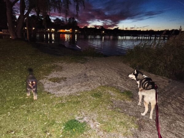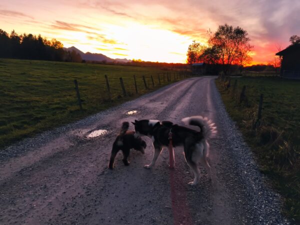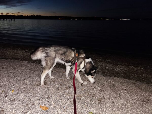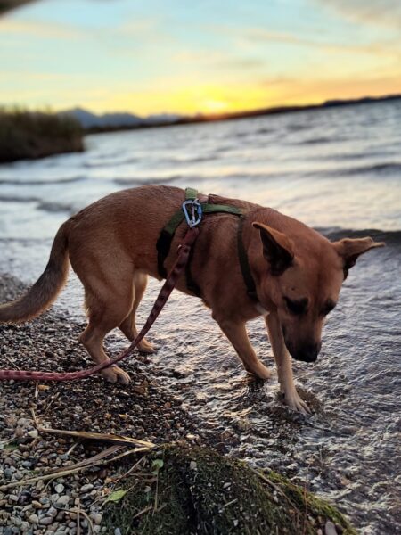 Gunda und Renate waren spätnachmittags mit Momo und Aika am Chiemsee. Es war ein schöner Spaziergang, den sie bis zur Dämmerung auskosteten. 🙂 Schaut mal: