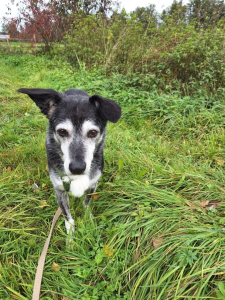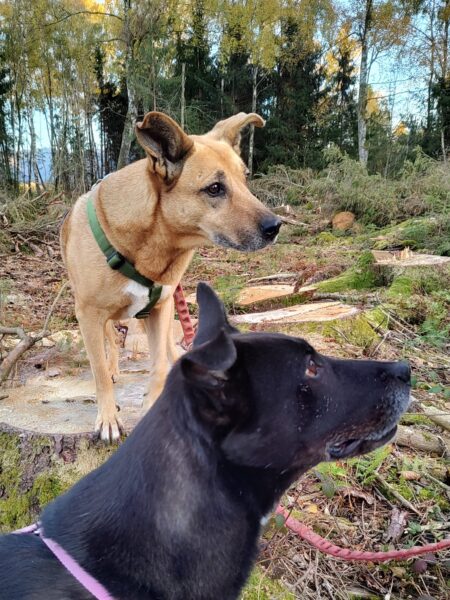 Jeanne war mit Lucky 2.0 bei mir im Training. Wir sind gemeinsam mit meinen Hündinnen spazieren gegangen, was recht gut klappte. Lucky konnte weitgehend ruhig bleiben, schnüffelte einträchtig mit ihnen herum und freute sich über Hundegesellschaft. 🙂