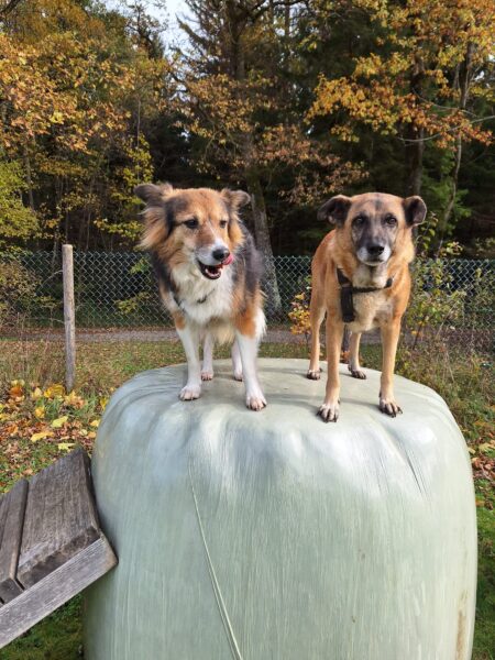 Anschließend fuhr Conny mit Lena, Angel und Bonnie zum Hundeplatz. Alle drei sausten über das Gelände, kletterten auf die Geräte, freuten sich über Leckerchen und Kuschelpausen und genossen die gemeinsame Zeit mit Conny. Als ein Gemeindeauto vorbei kam, legten Angel und Lena ein Wettrennen damit hin. 🙂