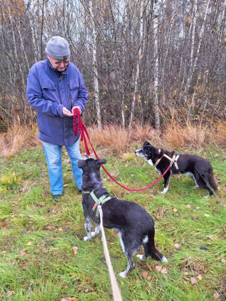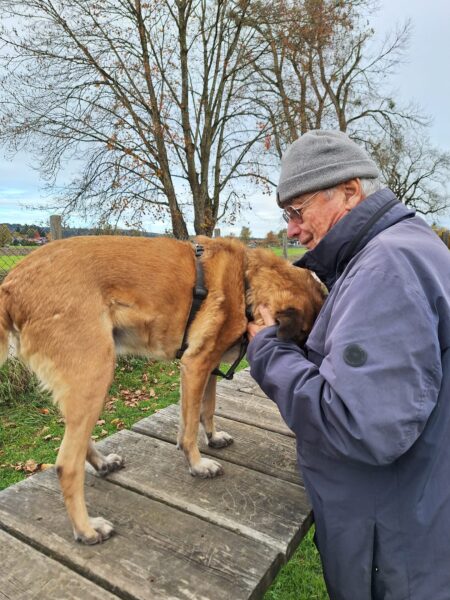 Dagmar und Fred waren mit Resi und Franzi zuerst auf der großen Wiese und danach noch ein Stück auf dem Weg an der Autobahn entlang. Die Mädels schnüffelten auf interessanten Spuren und freuten sich über Leckerchen und Streicheleinheiten. Es war ein schöner, entspannter Morgenspaziergang. 🙂