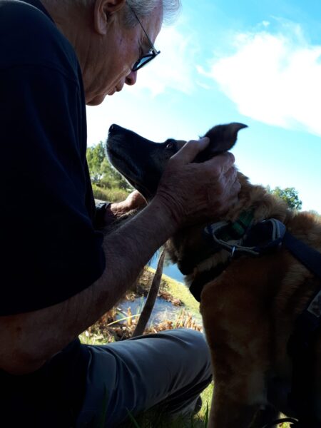 Dagmar und Fred gingen mit Lucky und Balto bis zu den Weihern in Richtung Übersee. Die Jungs schnüffelten viel am Wegesrand entlang und tranken an den Weihern. Es gab mehrere kurze Pausen für Balto, die Lucky zum ausgiebigen Kuscheln nutzte. 🙂