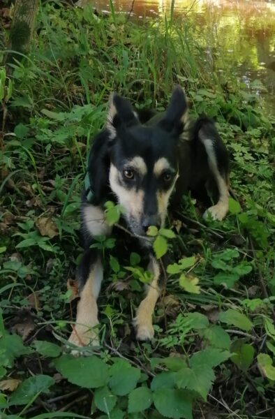 Auch mit Lisbeth fuhr Karin S. zum Farbinger Waldweg. Lisbeth schnüffelte ausführlich den Spuren von Mary nach, suchte zwischendrin ein paar Leckerlies und wälzte sich wohlig auf einer Wiese. 🙂