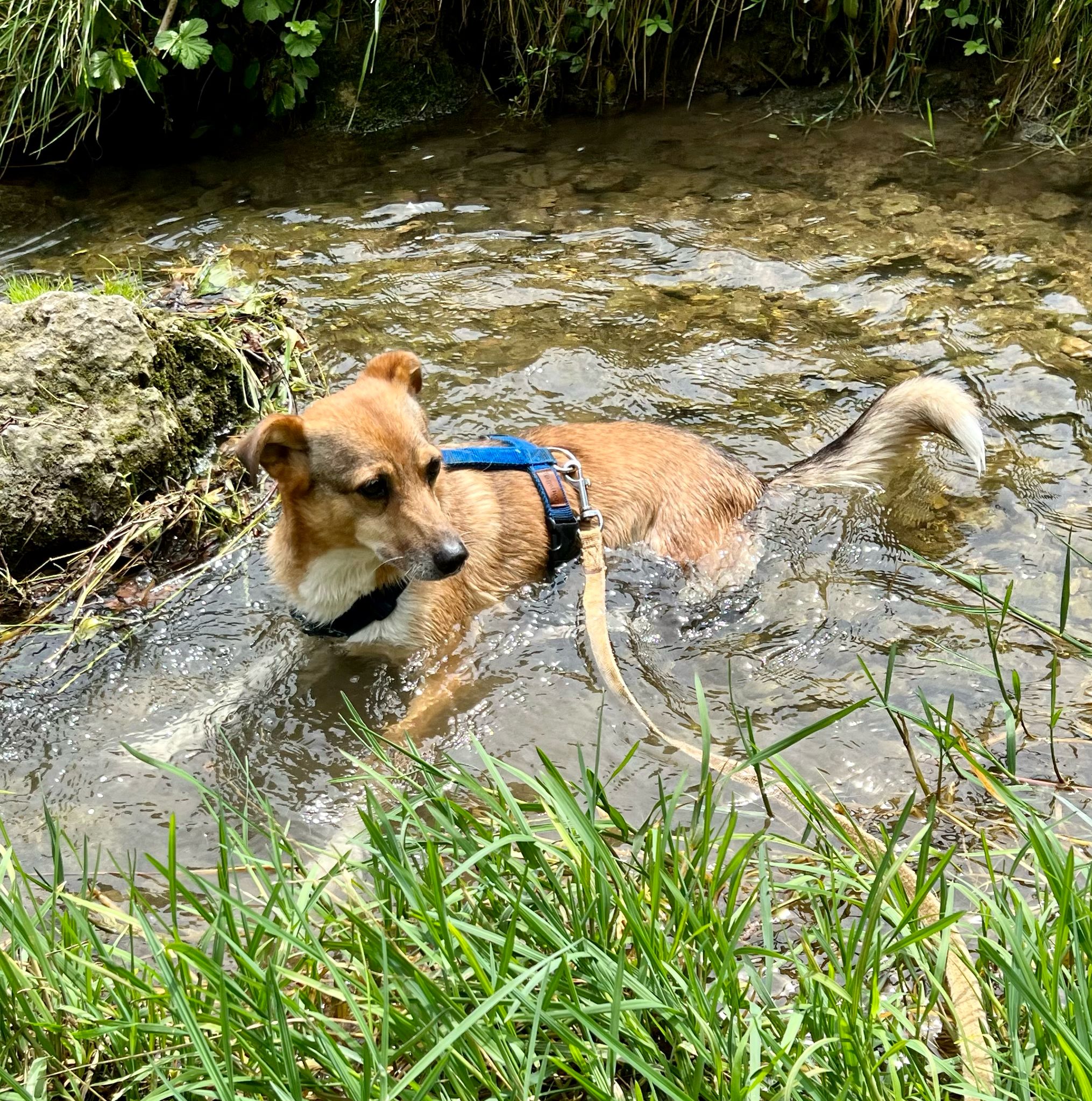 Anna-Maria fuhr mit Sam nach Rottau zum Grießenbachfall. Für Sam war dort alles neu und fremd, dementsprechend war er anfangs etwas aufgeregt, aber trotzdem neugierig. Er schaute sich viel um, am Bachfall angekommen staunte er und fand den sehr interessant. Er beobachtete das Wasser und fand die neue Gegend insgesamt spannend, so dass Anna- Maria beschloss, noch eine kleine Runde zu drehen, denn Sam war so voller Freude, Neues zu entdecken. 😃 Auf der Rückfahrt fuhren beide noch an einer Wiese mit Schafen vorbei, auch dort staunte Sam und blieb sehr ruhig dabei – was für ein super erfolgreicher Ausflug für Sam! 🙂