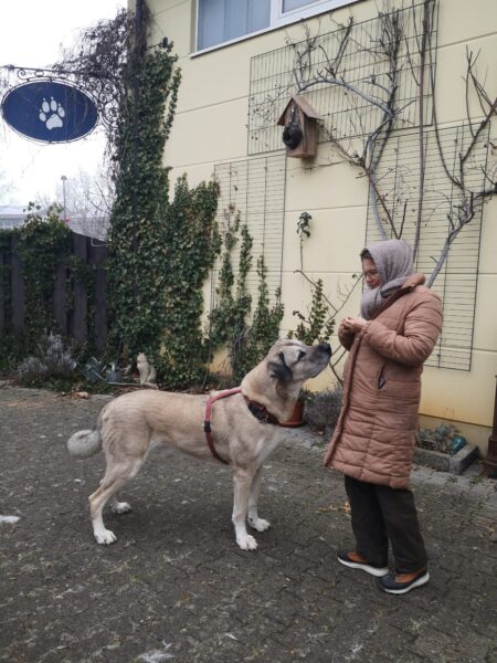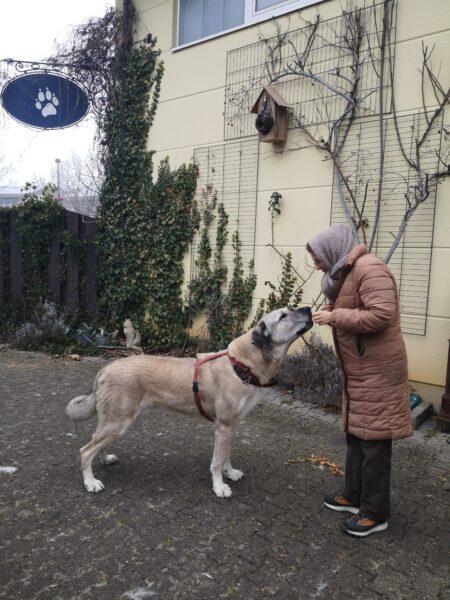 Karin kam mit Juri zu mir in den Innenhof, wo wir wie immer kuschelten, spielten und Tricks übten, für die es Leckerchen gab. 🙂