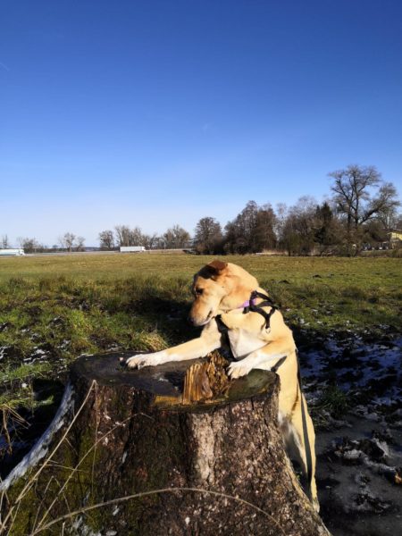 Elfriede machte auch mit Susanna einen langen Spaziergang vor in Richtung Felden. Susanna schüffelte und markierte viel und fand immer wieder interessante Stellen, an denen sie sich genüsslich wälzte. Zwischendurch nahm sie gerne Leckerlies und ließ sich sanft streicheln. 🙂