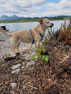 Conny fuhr am frühen Vormittag mit Bonnie zum Chiemsee. Vom Medical Park aus liefen sie am Ufer entlang und hatten sehr viele Hundebegegnungen, die alles sehr freundlich verliefen. Entspannt beobachteten Conny und Bonnie während der Pause auf einer Bank das Geschehen auf dem Wasser und genossen die angenehme Stimmung. Wieder zurück im TierHeim blieb Conny noch lange bei Bonnie im Zimmer, bis diese entspannt eindöste. 🙂