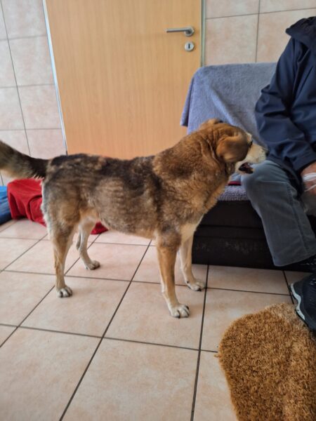 Anna Maria war zum Kuscheln bei Santana, als er die Spritzen noch nicht bekommen hatte. Santana freute sich über den lieben Kuschelbesuch sehr, aber auch Anna Maria bemerkte, wie mau er sich da noch fühlte, was sich im Lauf des Tages aber Gott sei Dank besserte. 🙂
