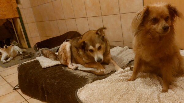 Mittags kam unser Tierarzt. Er akupunktierte Resi und Franzi, was die Mädels wie immer brav machen ließen. Aika bekam ihre Librella- Injektion und ihre Ohren wurden kontrolliert, die wir weiterhin mit Salzwasser behandeln sollen. Rosalie`s Pfoten wurden als nächstes vom Doc kontrolliert, sie sehen gut aus, die Behandlung setzen wir aber weiterhin fort, um keinen Rückfall zu riskieren, solange der Boden noch keinen richtigen Frost abbekommen hat. Alex besprach mit dem Tierarzt die Behandlungen und Medikationen der anderen Hunde, die aktuell so beibehalten werden.