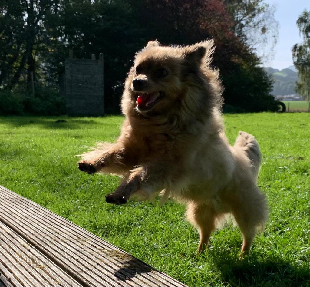 Conny fuhr mit Lena zum Hundeplatz. Oben angekommen rannte sie sofort zwei anderen Hunden am Zaun hinterher und verbellte diese, was Conny natürlich unterbrach. Um sie zu beschäftigen, verteilte Conny später Leckerlies, die Lena begeistert einsammelte. Dann tobte sie fröhlich über die Wiese und wälzte sich übermütig. 🙂