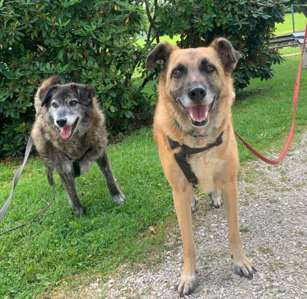 Mit Josh machte Em einen gemütlichen Morgenspaziergang. Sie kamen nicht ganz bis zur zweiten Bank, Josh wollte schon vorher umkehren, dafür machten sie am Stromhäusl eine kurze Pause und Josh suchte dort eifrig nach Leckerchen. Gut gelaunt kamen die beiden zurück, wo Suri sie fröhlich herumspringend begrüßte. 🙂