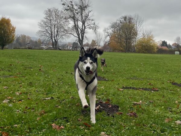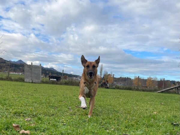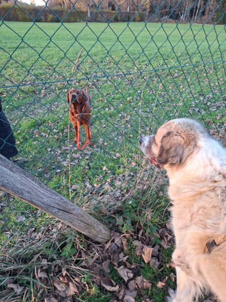 Mit Aslan war Chris spätnachmittags auf dem Hundeplatz, wo die beiden den herrlichen Sonnenschein und die entspannte Stimmung genossen. Aslan stromerte munter am Zaun entlang, kontaktete mit anderen Hunden und suchte eifrig nach den von Chris ausgelegten Leckerlies. Zwischendurch machte er mit Chris gemütliche Kuschelpausen und beobachtete dabei entspannt die Umgebung. 🙂