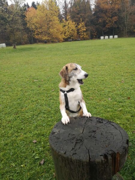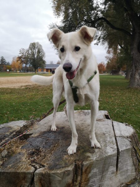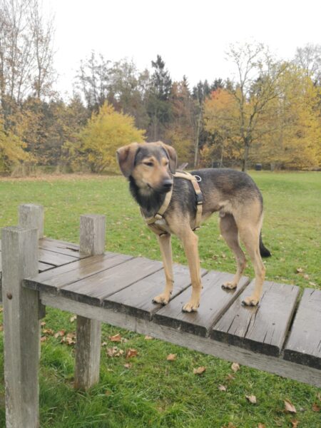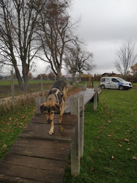 Silja fuhr mit Sam zum Hundeplatz. Sam war im Hof aufgeregt-ängstlich und brauchte eine Weile, ehe er ins TierHeimauto sprang. Oben angekommen hatte er aber viel Spaß mit Silja, flitzte am Zaun entlang, turnte an den Geräten und suchte begeistert nach Leckerchen. Auch beim Kuscheln genossen beide die gemeinsame Zeit. 🙂