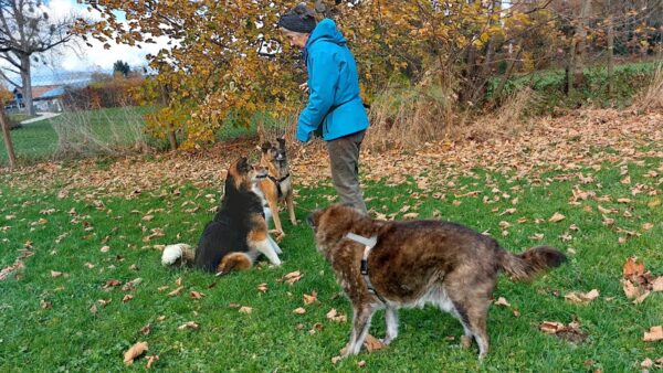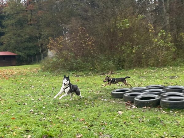 Conny und Elfriede waren mit Rosalie, Lucky und Balto auf dem Hundeplatz, wo Rosalie und Lucky herumflitzten und sich dabei austobten. Balto ging es wie immer etwas gemütlicher an und nachdem die 3 an den Reifen Leckerchen eingesammelt hatten, gingen Conny und Elfriede noch auf eine Schnüffelrunde außen um den Hundeplatz herum mit ihnen. Das mögen sie immer besonders, vor allem, wenn sie wie heute, auch noch für sie ausgelegte Leckerchen dabei finden. Was für eine Freude! 🙂