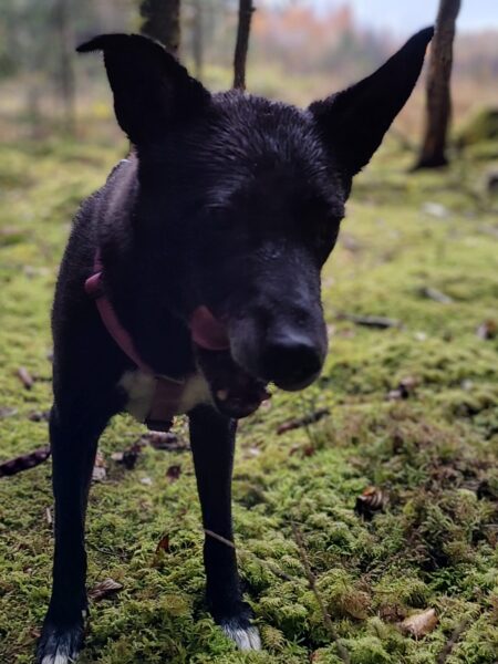 Kirana freute sich über einen Spaziergang mit Silja zum Waldweg und noch ein Stück weiter in Richtung Übersee. Sie suchte ausgiebig nach Mäusen, aber die waren Gott sei Dank nicht zu finden und so blieb es beim ausgiebigen Schnüffeln in den unzähligen Mauselöchern. 🙂