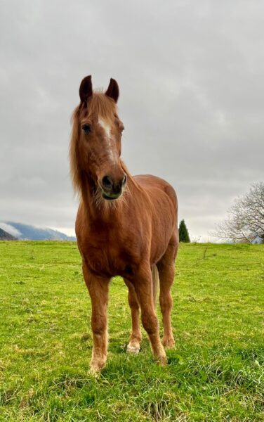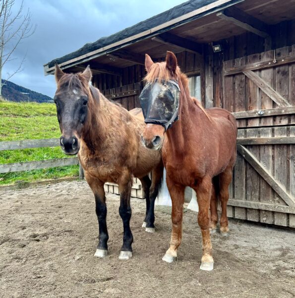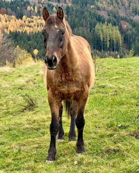 Morgens war Sonja bei den Pferden, die sie – und das Müsli – schon ungeduldig erwarteten. Während die beiden fraßen, kontrollierte Sonja die Tränke, legte frisches Heu nach und mistete aus. Danach war Fell- und Hufpflege dran und nachdem auch die erledigt war, gingen Gowinda und Wallace zufrieden auf die Weide. 🙂