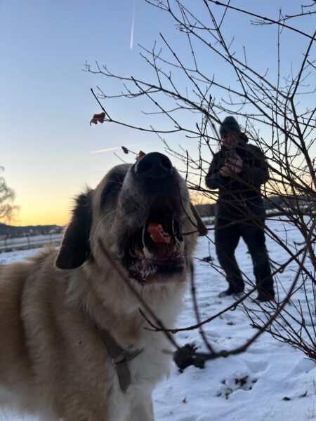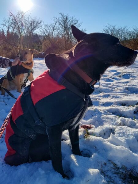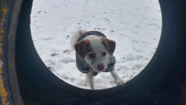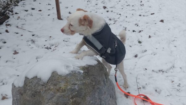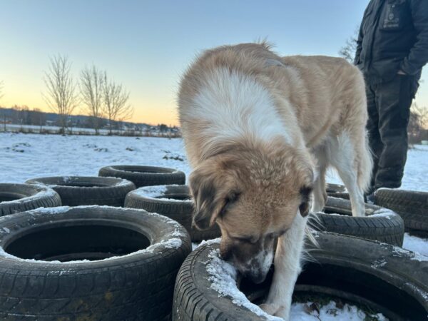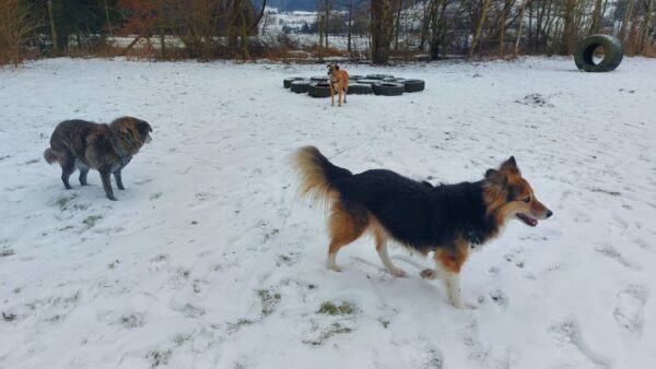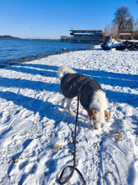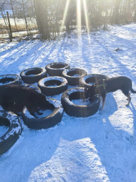 Conny fuhr mit Lena zum Hundeplatz, wo die beiden viel Spaß hatten. Lena flitzte ausgelassen herum, um bei der Kälte nicht auszukühlen und verscheuchte dabei unermüdlich die vielen Krähen. Während der Gerätearbeit gab es Leckerchen und anschließend viele Streicheleinheiten während einer Pause an der Hütte. 🙂