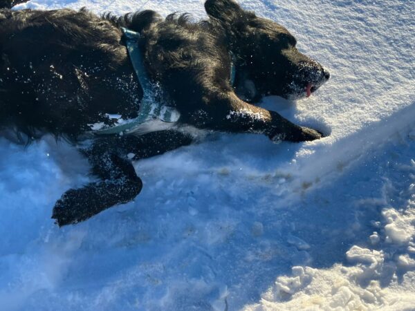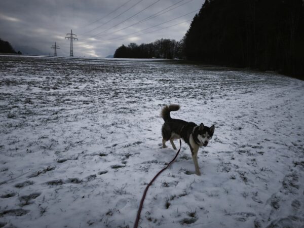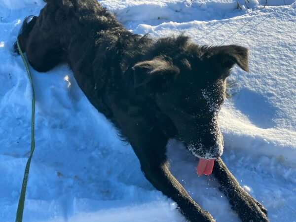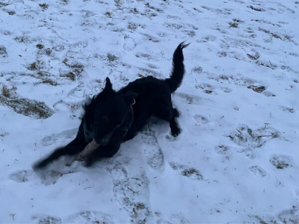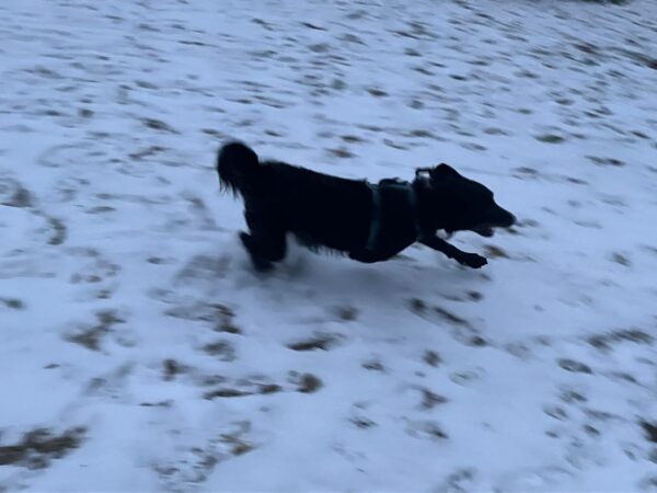 Mit Lucky 2.0 war Jeanne am späten Nachmittag auch auf dem Hundeplatz, wo der sich so richtig austobte und 1/2 Stunde einfach nur rannte, sich im Schnee kugelte und wieder rannte…. Entsprechend ruhig und zufrieden war der Rückweg zu Jeanne´s Auto und die Heimfahrt. 🙂