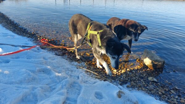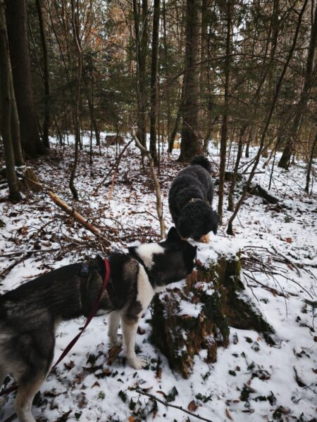 Conny fuhr mit Rosalie, Lucky und Balto zum Hundeplatz, wobei Elfriede mit dazu kam. Oben angekommen war Lucky als erster bei den Reifen und suchte schon mal alles ab, Rosalie natürlich auch. 🙂 Balto kam mit Elfriede gemütlich nach und als alle dort waren, gab es die heißersehnte Leckerliesuche. Ein paar Hunde waren auf dem Bachweg bzw. Waldweg unterwegs und wurden natürlich begrüßt. Die Schnupper-Runde um den Hundeplatz machten sie im Anschluß, für Balto ist das immer der Höhepunkt, sooo viele spannende Düfte. 🙂