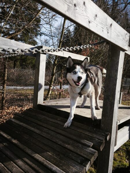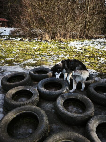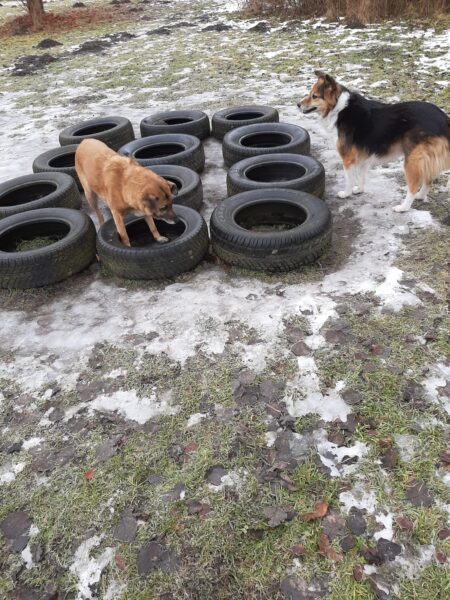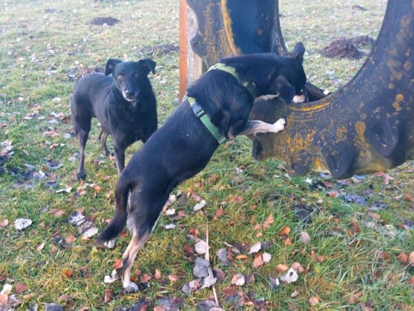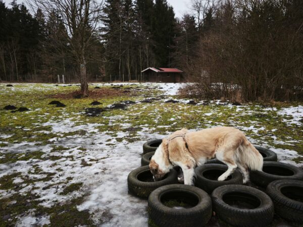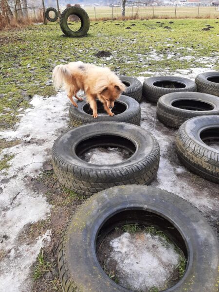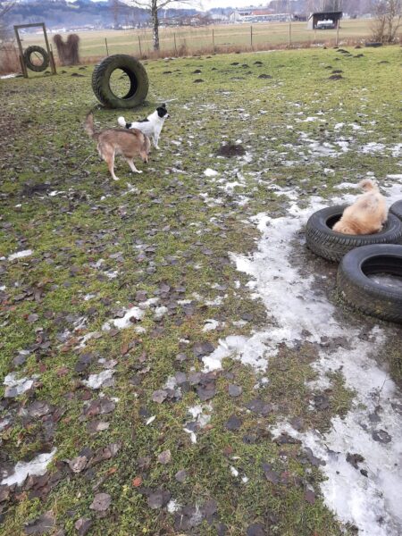 Fred fuhr mit Rosalie, Lucky und Balto zum Hundeplatz. Oben angekommen sausten Rosalie und Lucky ausgelassen herum, während Balto im Schnüffelmodus war. An den Reifen freuten sich alle drei über eine Leckerliesuche, danach gingen sie weiter zu den verschiedenen Geräten, Lucky und Rosalie turnten flott darüber, Balto folgte in seinem Tempo. Lucky wollte noch ausgiebig gestreichelt werden, danach machten sich alle gut gelaunt auf den Rückweg zum TierHeim. 🙂