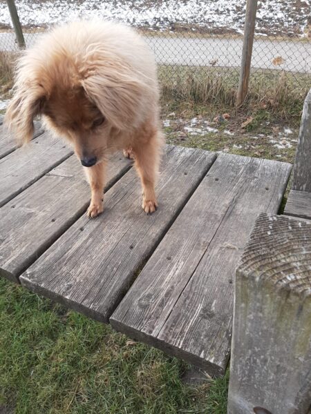 Anschließend ging Carsten mit Kirana von der Schreinerei Mehnert aus zum Hundeplatz, wo Kirana sich übermütig austobte und fröhlich mit Carsten über die Geräte turnte. Natürlich durfte auch eine Leckerliesuche nicht fehlen, Kirana sammelte sie ratz-fatz ab und sauste dann wieder lachend weiter. 🙂