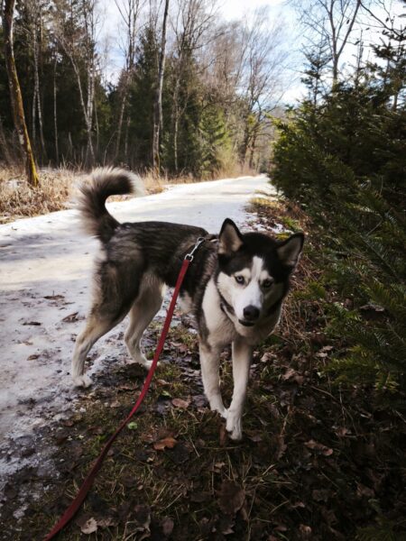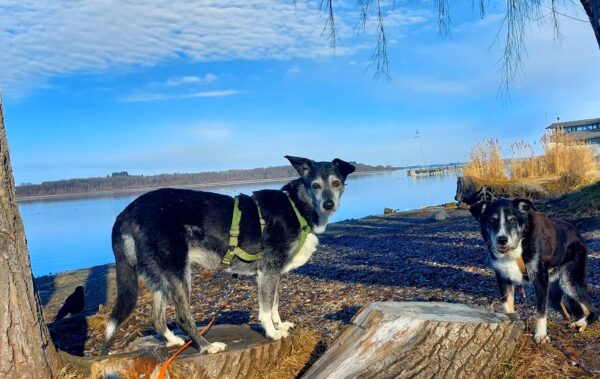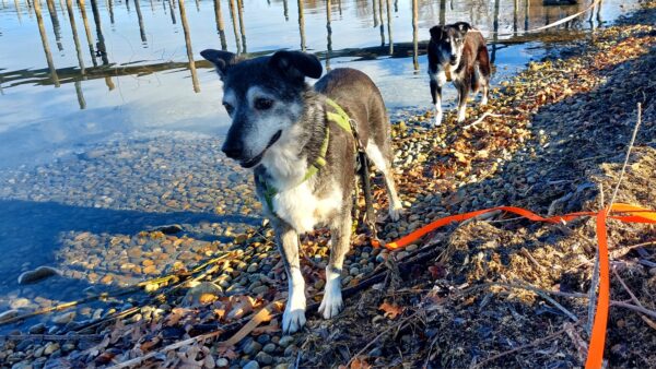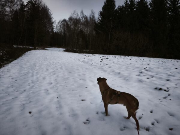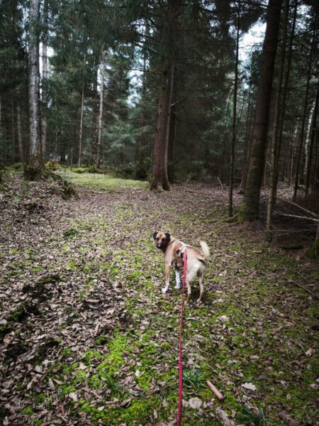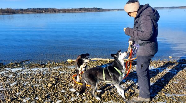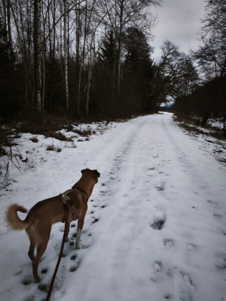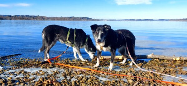 Jörn war mit Lucky 2.0 in Richtung Übersee bis zum Chiemsee unterwegs. Lucky schnüffelte eifrig am Strand entlang und hielt für ein Foto tatsächlich kurz still. 🙂 Auf dem Rückweg bewies er, dass er brav an der verkürzten Leine laufen kann. Die war nötig, da vorher Rehe vor ihnen den Weg gekreuzt hatten und Lucky das Jagdfieber gepackt hatte. Nach einer Weile ließ das aber wieder nach und sie konnten entspannt und mit längerer Leine weiter laufen. 🙂