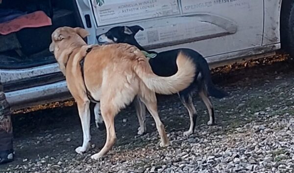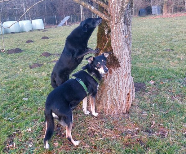 Leider wollte Percy auch heute wieder nicht ins TierHeimauto einsteigen, als Conny mit ihm, Nicky und Laluna zum Hundeplatz fahren wollte. Obwohl Conny, Biggi und dann auch Alex sämtliche Register zogen, wollte er nicht ins Auto und so fuhr Conny wieder nur mit Nicky und Laluna. Die drei hatten viel Spaß und auch Nicky beteiligte sich rege am Geräteturnen und Leckerlies suchen, ohne ständig zum Zaun zu flitzen, ein richtig schöner und tiefenentspannter Ausflug. Als sie zurück kamen, flitzte Percy aus dem Zimmer raus in den Hof und begrüßte die drei freudig. Conny spielte mit allen dreien, alberte mit ihnen herum und sauste mit ihnen durch den Hof. Dabei flitzte Percy sogar ins Auto, vielleicht ja nur ein „Versehen“, aber immerhin ist das Auto nicht per se „doof“ für ihn. Vielleicht klappt es ja beim nächsten Mal wieder…