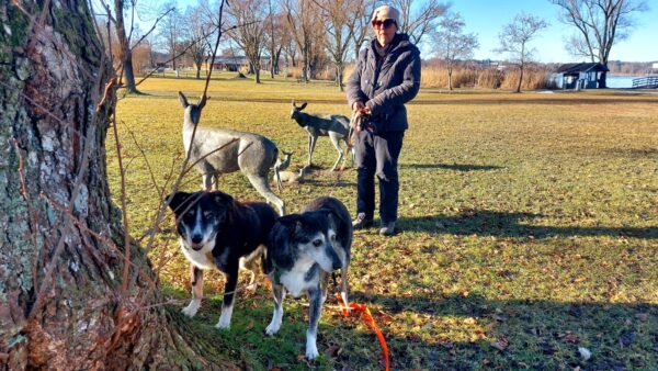 Elfriede und Conny waren mit Resi und Franzi im Medical Park unterwegs. Es war ein schöner Spaziergang in der Sonne, am Strand fischten Resi und Franzi Leckerchen aus dem Wasser und bei den Rehkulpturen gab es auch nochmal eine Leckerliesuche. 🙂