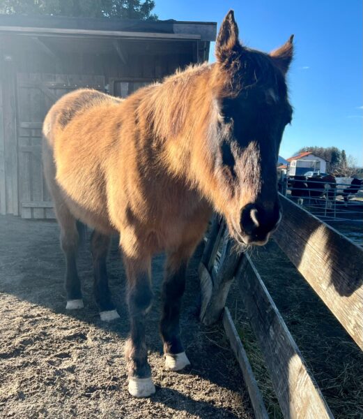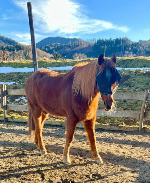 Morgens war Sonja bei den Pferden, die sie freundlich wiehernd auf dem Paddock begrüßten. Während die beiden ihr warmes Müsli fraßen, mistete sie ab, legte frisches Heu nach und kontrollierte die Tränke. Nach der Huf- und Fellpflege kuschelte sie noch eine Weile mit ihnen, bevor sie wieder fuhr. 🙂