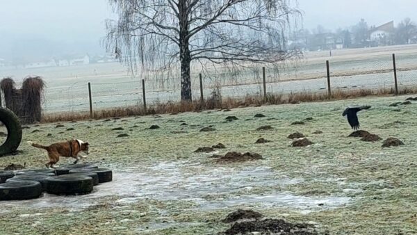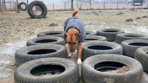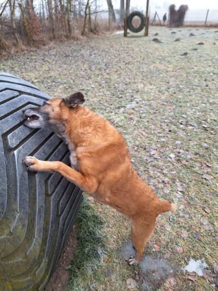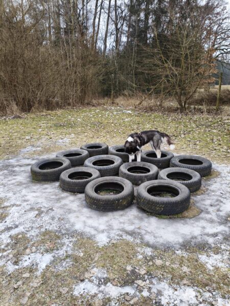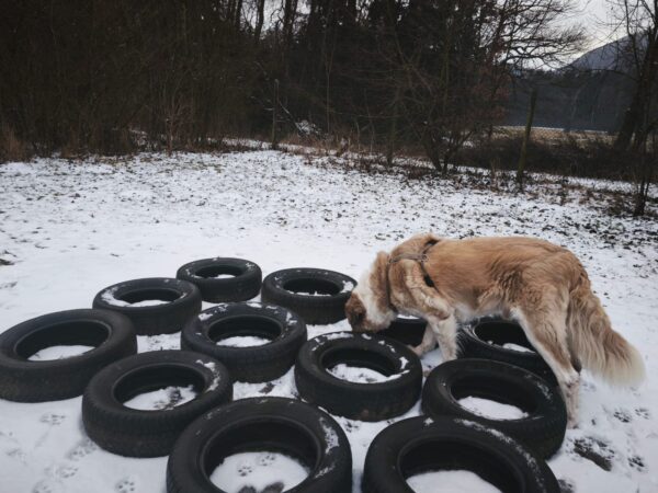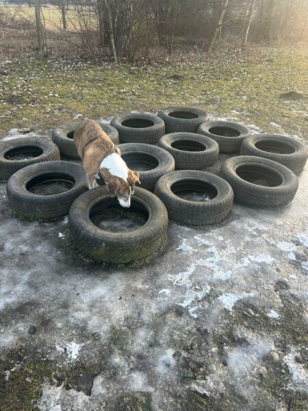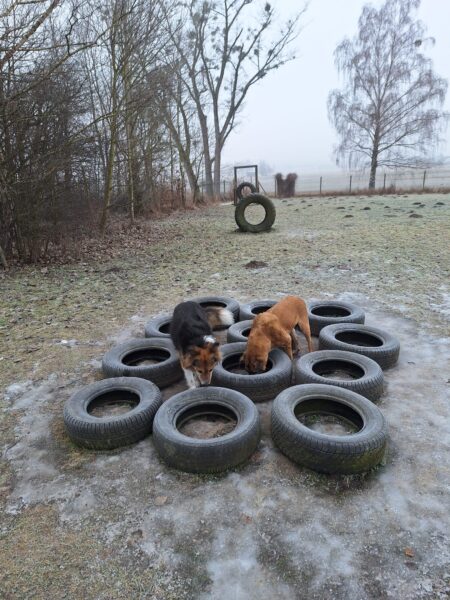 Danach fuhr Kerstin mit Lena zum Hundeplatz. Die beiden kennen sich noch nicht so gut, hatten aber trotzdem eine schöne Zeit miteinander. 🙂 Lena sauste fröhlich herum, schnüffelte den vielen anderen Hundespuren nach und hatte viel Spaß beim Geräteturnen und Leckerchen suchen. 🙂